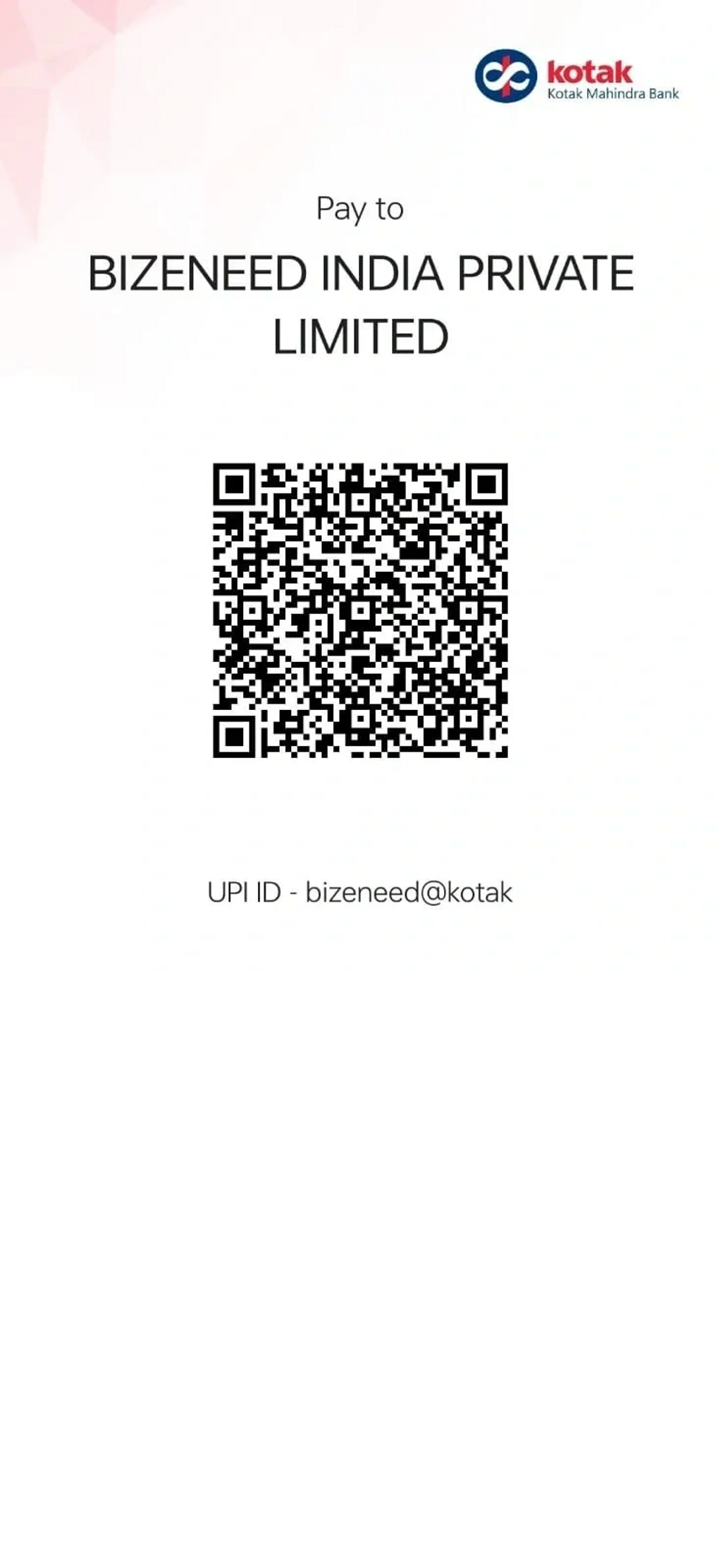 UPI ID - Bizeneed@kotak